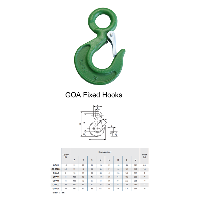 Optional Hook Selection from Accessories - Hook DetailsThe models with up to 15000 kg capacity are fitted with test certificate obtained with sample weights, for higher capacities the certificate is available on request.